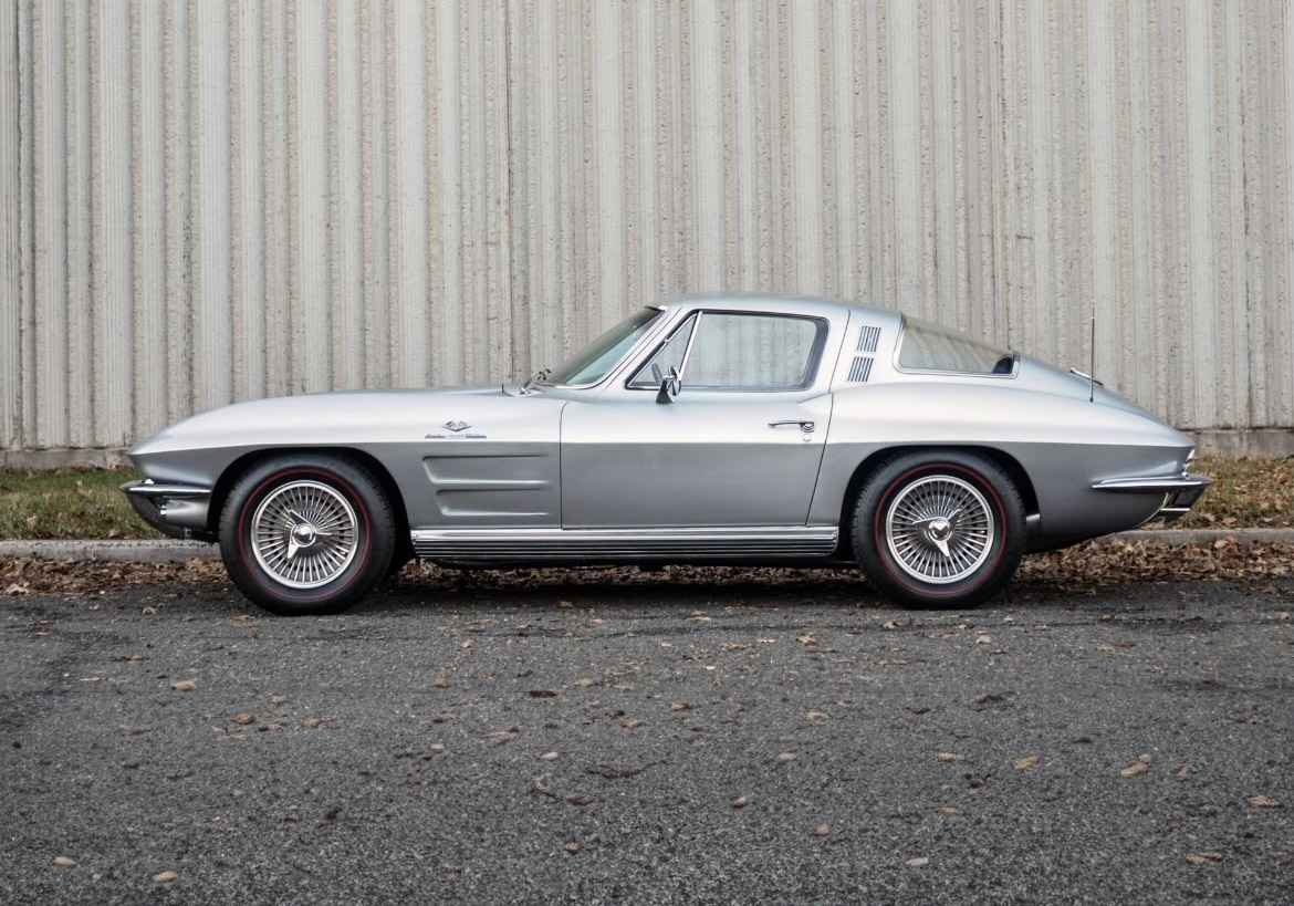 ’63 was the only year for several unique design elements. Most notably the rear split window that was ultimately deemed too difficult to see out of. The hood’s non-functional grilles were also unique, and these features make the 1963 Corvette highly prized in the collector car market. There were a total of 21,513 total units made. 10,594 split window coupes at a price of $4,257 and 10,919 convertibles at a cost of $4,037. All C2's came with a 327-cubic-inch V-8 engine, producing 250/300/340 horsepower, and 360 horsepower when equipped with fuel injection. The standard three-speed manual, optional two-speed Powerglide automatic, and optional four-speed manual and a close-ratio four-speed manual were available for the top two engines. The coveted Z06 option took the corvette to a new level. It was an $1,818 upgrade for owners wishing to race a Corvette in sanctioned racing events. Once the buyer ordered the fuel-injected V-8, four-speed manual, and Positraction (limited-slip) differential, the Z06 added a larger front sway bar, uprated springs and shocks, and a 36.5-gallon fuel tank for endurance racing. The last upgrades were optional leather, and options like air conditioning, power windows, tinted glass, woodgrain effect steering wheel, and an AM/FM radio. Power steering and brakes were also available for an added driving experience.