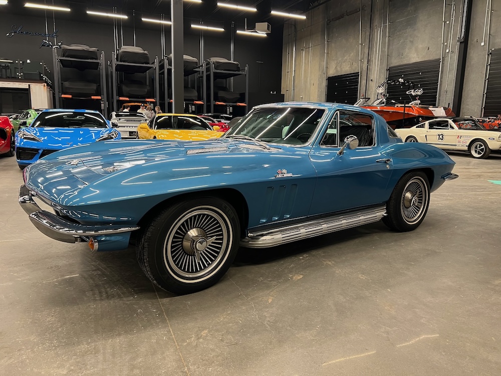 The C2 continued to change wheel covers and rocker panels. B-pillar mounted vents were deleted, and new “Corvette Sting Ray” emblems were added to the hood and rear deck. The once optional reverse lights were now standard, while the Off Road Exhaust System (N11) grew in popularity threefold over last year and sales of the side exit exhaust went up by 60 percent. The gas filler door now had a turbine-effect texture around the logo. Interior changes were minimal like new seat covers, chrome door pulls, four-way hazard flashers and shoulder belts were optional. Chevrolet sold an astounding 27,720 units. 17,762 were convertibles at a base price of $4,084 and 9,958 coupes at $4,295. 1966 introduced the 427-cu-in big-block V-8, available in either (L36) 390 or (L72) 425 horsepower with an impressive 460 lb-ft of torque. All big-block Corvettes came with a Positraction axle, firmer suspension, and four-speed manual transmission. The big-block’s seemingly instant popularity meant the 327 small-block was reduced to options, an L75 (300 horsepower) or an L79 (350 horsepower). Corvettes sold in California received a new air-injection system that helped lower exhaust emissions, while a new egg-crate grille was introduced as well.