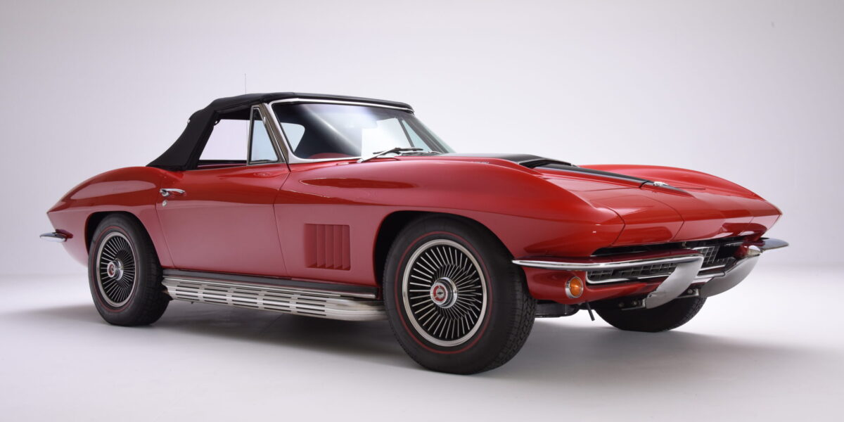 The final year of the second-generation Corvette sported modest yet notable changes: Hood and fender emblems were deleted. The fender’s side vent now had five fins. Rocker panel covers were flat and unadorned, a large backup lamp was now placed over the license plate, and wheel covers were replaced with standard Rally wheels with chrome beauty rings. The optional aluminum turbine wheels no longer sported knock-off hubs. The big news was under the new-for-’67 stinger hood scoop for 427-cu-in big-block V-8 Corvettes: the 390-hp L36, 400-hp L68, 435-hp L71, and an L88 race engine with aluminum heads and an underrated 430 horses. L71 engines could be ordered with aluminum heads (L89) for extra weight savings and performance. The standard 300-hp and optional 350-hp small-block V-8s remained. Interior changes for 1967 were limited to new seat upholstery, redesigned control knobs, a relocated hand brake lever, and a new dashboard cowl that eliminated the passenger’s grab handle. Sales declined a bit to 22,940 units. 14,436 convertibles and 8,504 coupes, at a base price of $4,240 and $4,388, respectively.Buyers Guide: C2 Corvette