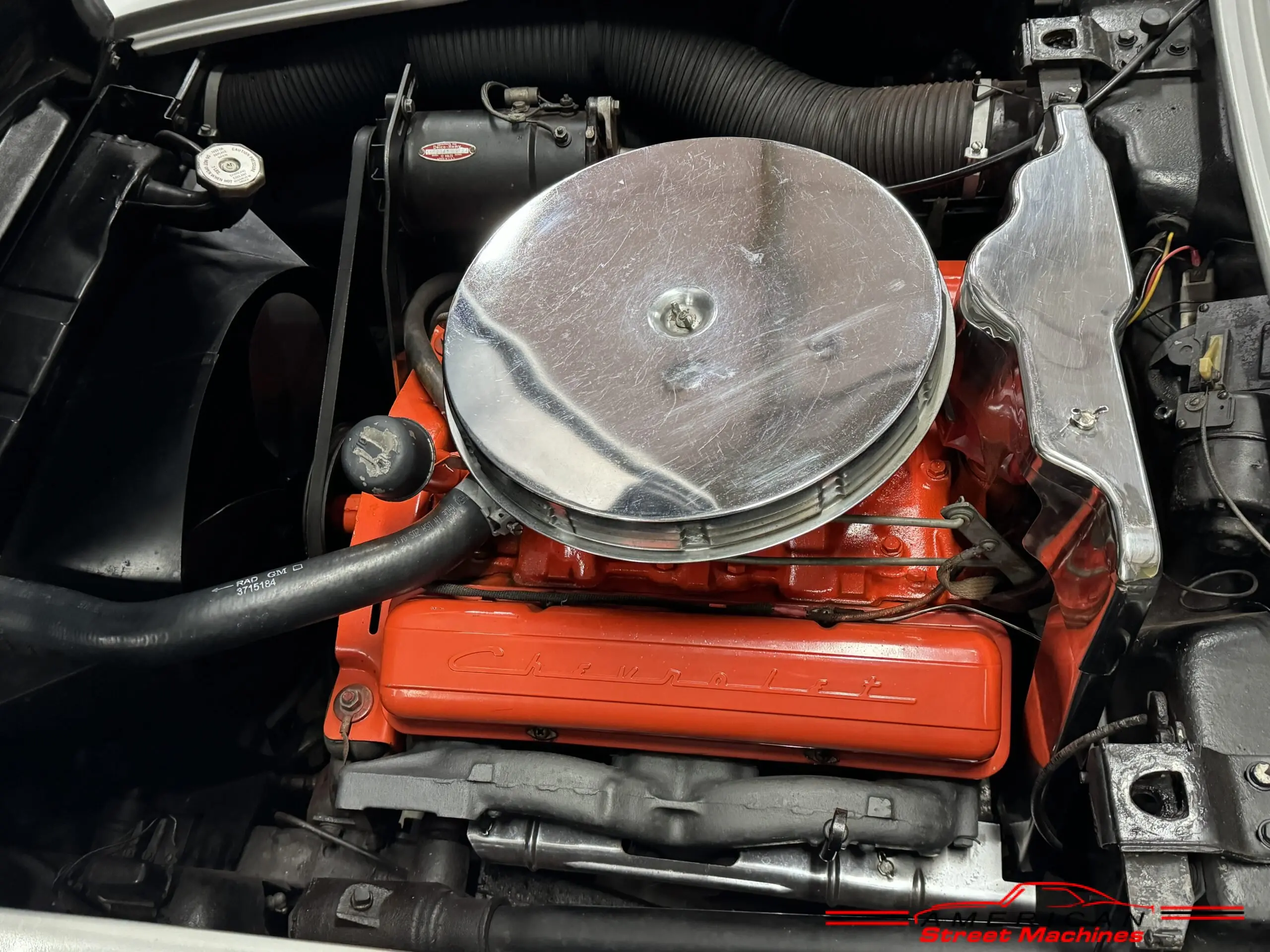 Power with the Sweet Sound of Action- The life blood of Corvette performance comes from its Chevrolet-engineered 283-cubic-inch (4.7 litre) Corvette V8. This V8 was available in five versions, ranging from the standard 230-h.p. V8 with 4-barrel carburetion to the 290-h.p. Corvette V8 with Ramjet Fuel Injection, attaining over one h.p. per cubic inch of displacement.