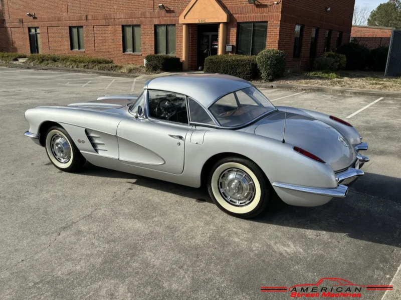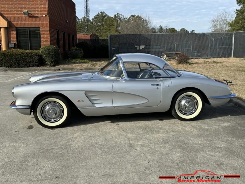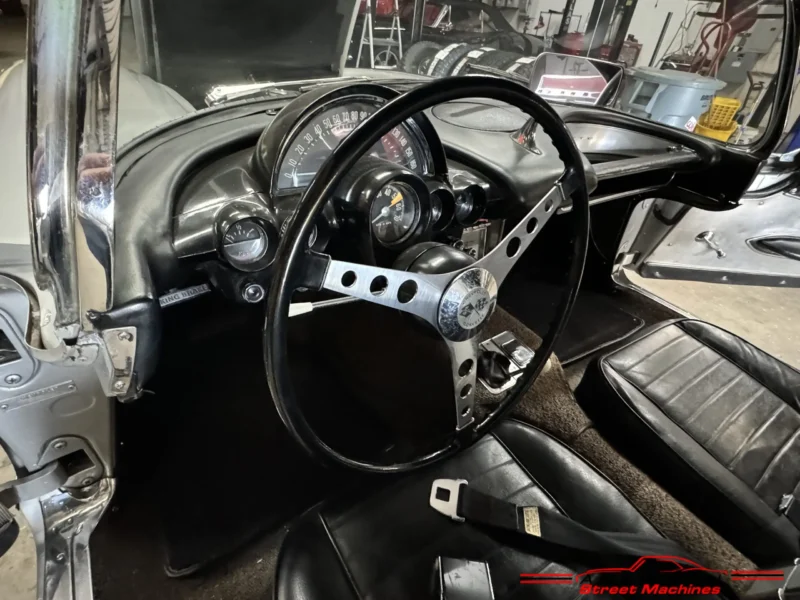 The 1959 Corvette featured slight changes from the previous model. The new edition boasted clean, pure styling, due to the loss of unneeded chrome and hood louvers. It was overall, mechanically unchanged from 1958. Several other design changes were introduced including new Magic-Mirror acrylic lacquer finish to keep it looking brilliant for years to come, and a luxurious cockpit that was designed for navigator comfort. A new instrument panel with glare-reducing, concave instruments was introduced. The seats and door panels were redesigned, and the addition of a shelf under the dash was new for 1959. The ’59 offered a variety of power teams engineered for driving fun.
