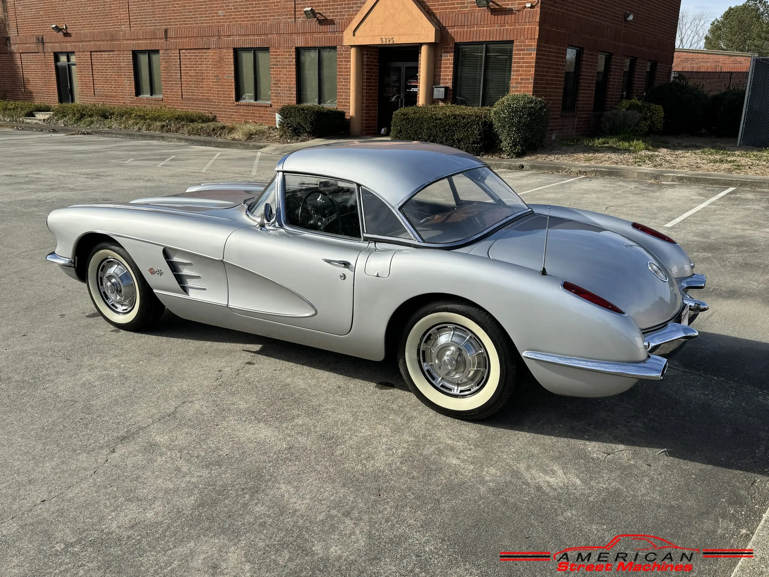 1959 Corvette that is documented with order sheet and original sales invoice copies. This is a very correct car with correct Inca Silver paint (1of 957) and Black trim. Ordered with option 509A solid Silver. Could possibly be 1 of 1 solid Inca Silver cars. Correct DG 283, 230hp with correct power glide automatic transmission. Also ordered with hard top only, deluxe heater, wide white wall tires and signal seeking radio. Hard to find a corvette of this year that is this original with one repaint. The last owner only drove this car in parades in the VA area. Great investment Corvette you can drive and have fun with.