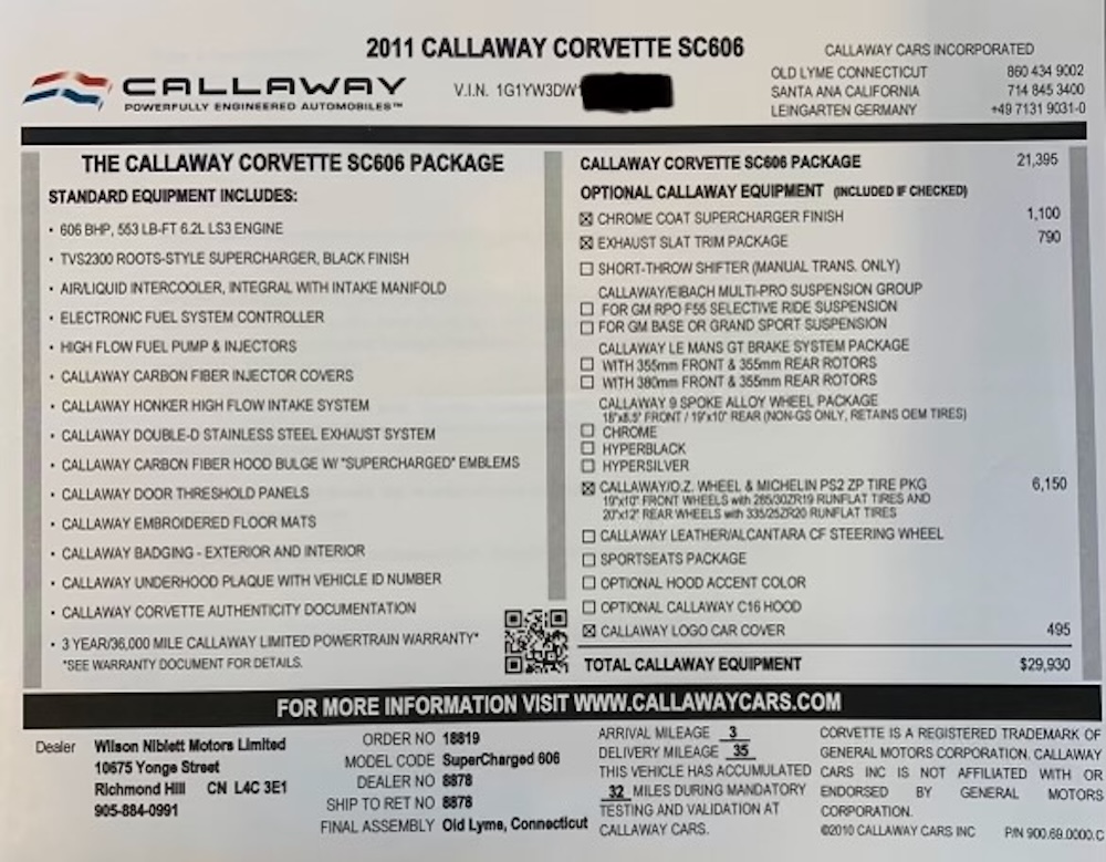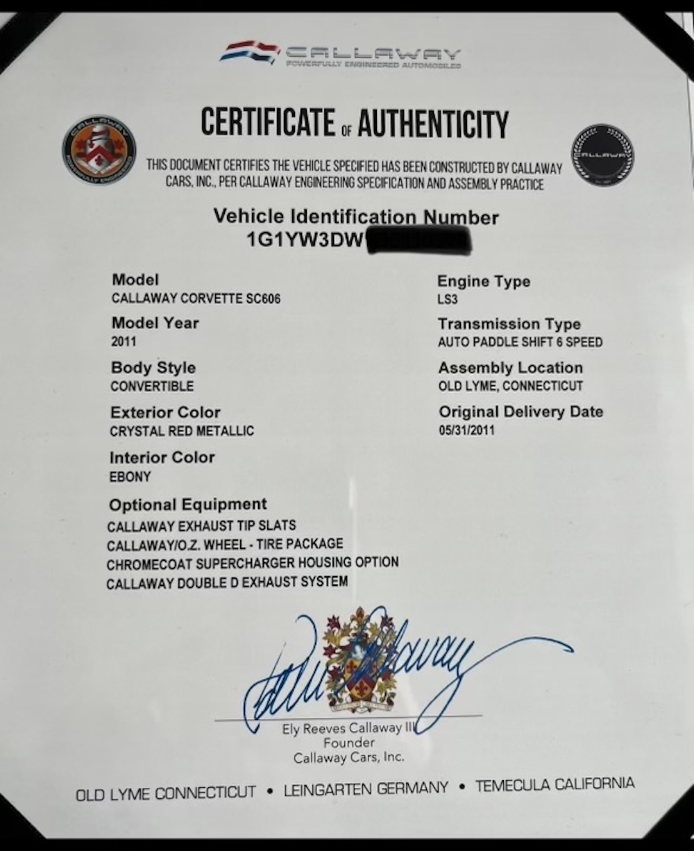 2011 Callaway SC606 Corvette Grand Sport 3LT (LIVE AUCTION)